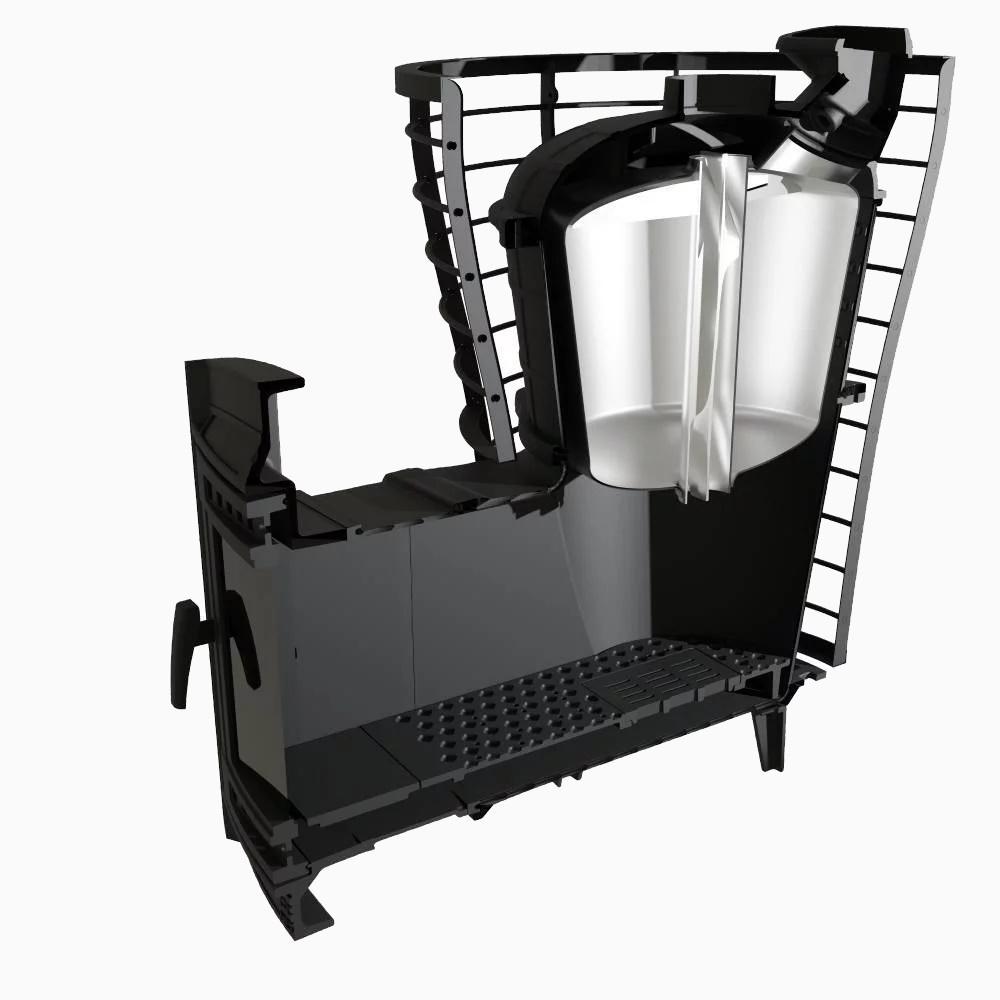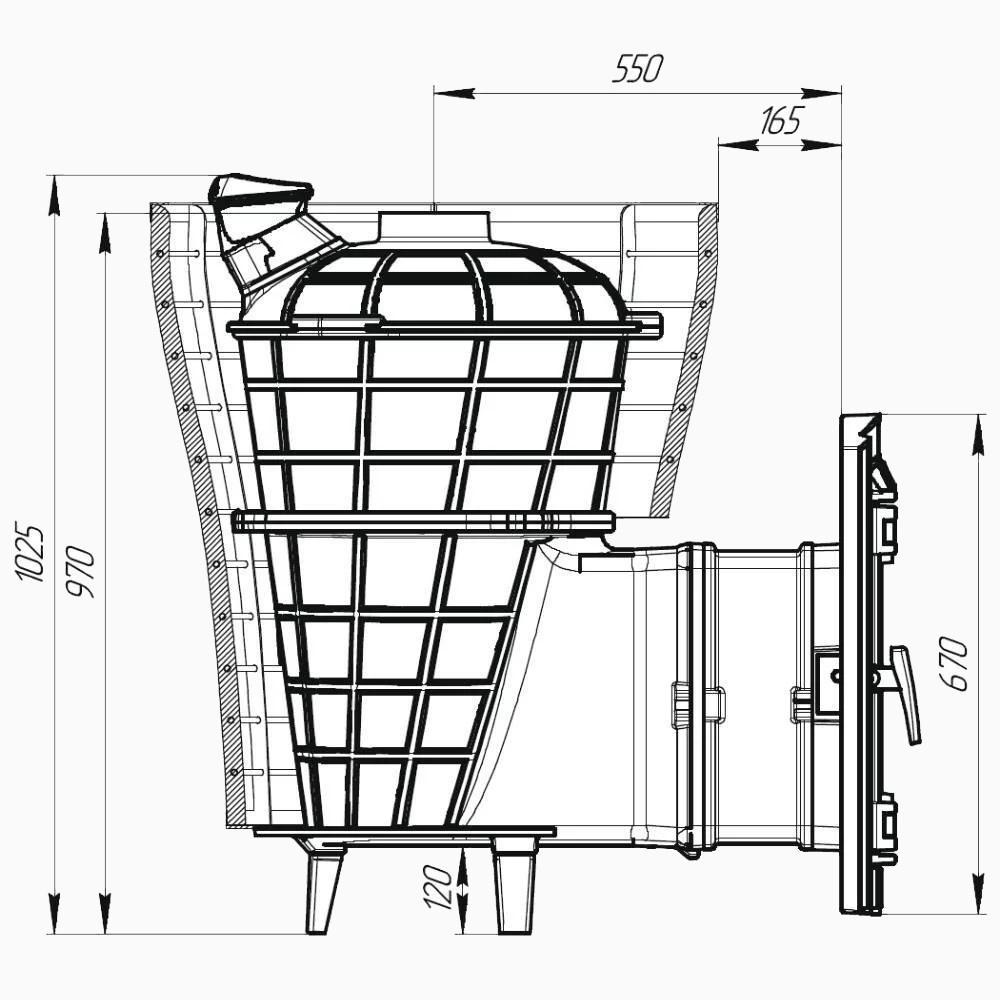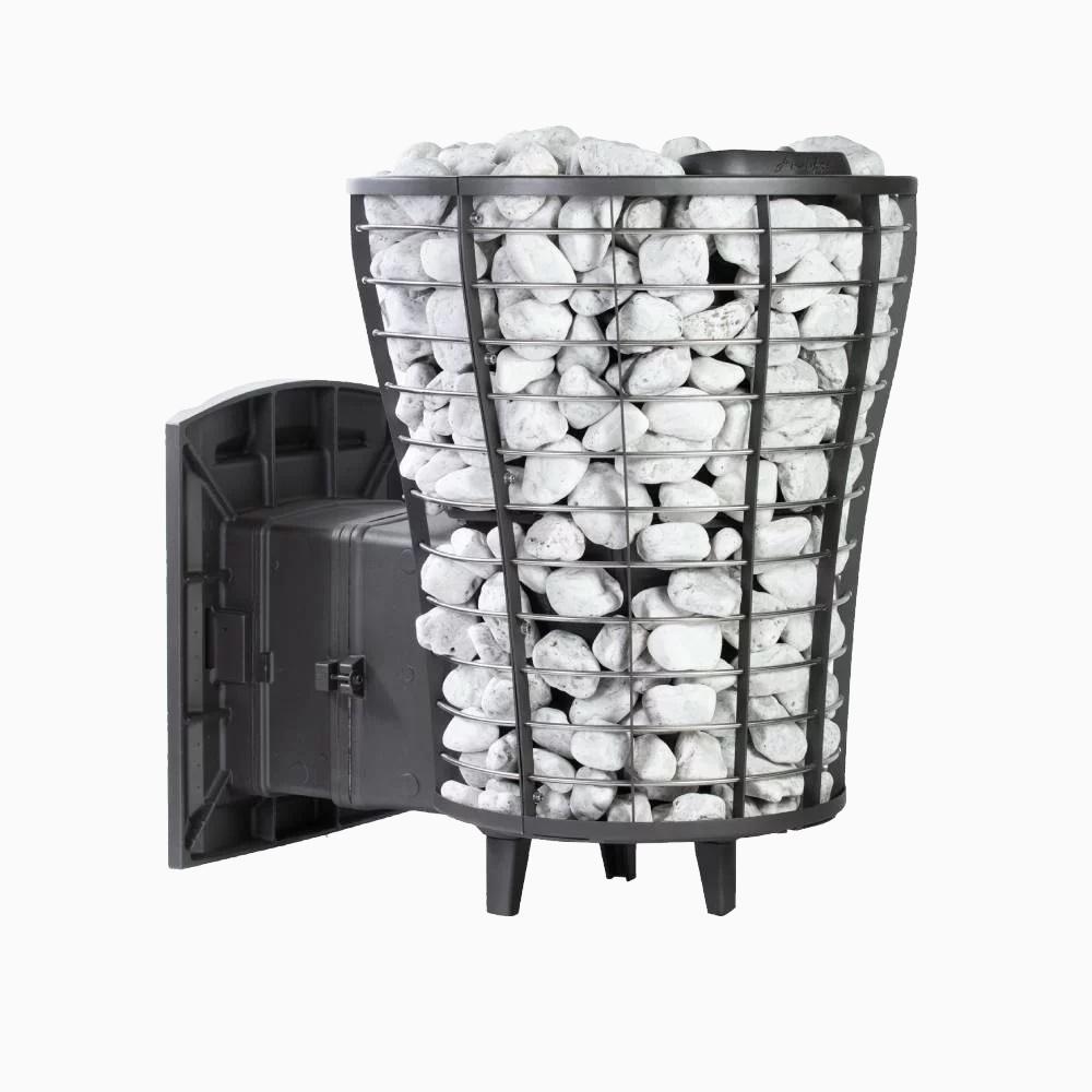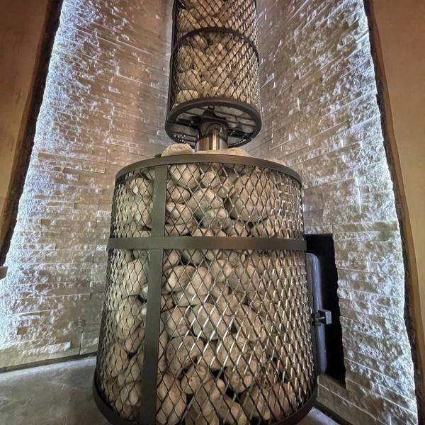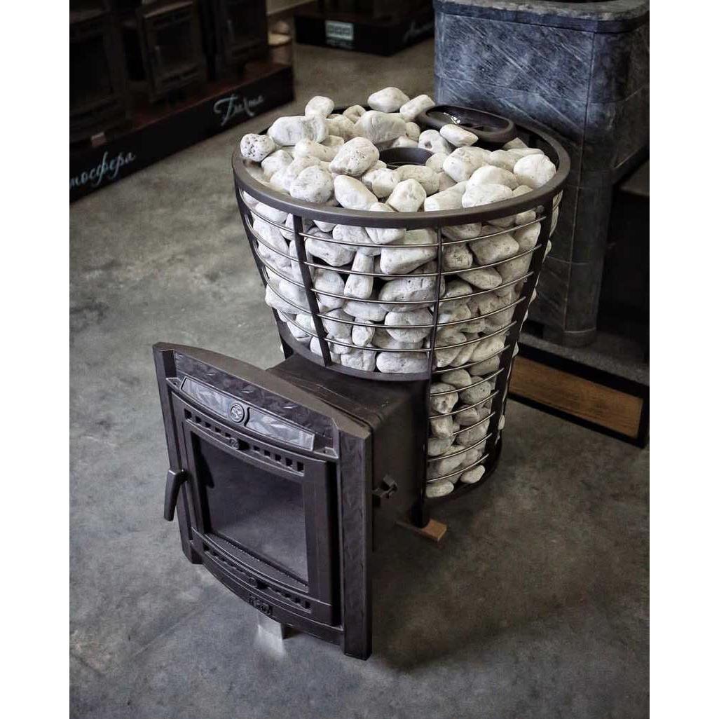 Модель повышенной мощности, обеспечит максимальное количество пара в больших помещениях. Кожух печи изготовлен в виде сетки из нержавеющей стали с прямоугольными ячейками и полностью заполняется природными камнями, обеспечивая высокую динамику нагрева парильного помещения.