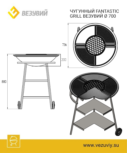 Подставка для Везувий Fantastic Grill Ø 700 изготовлена из стального профиля квадратного сечения. Она чётко рассчитана для этой модели гриля.