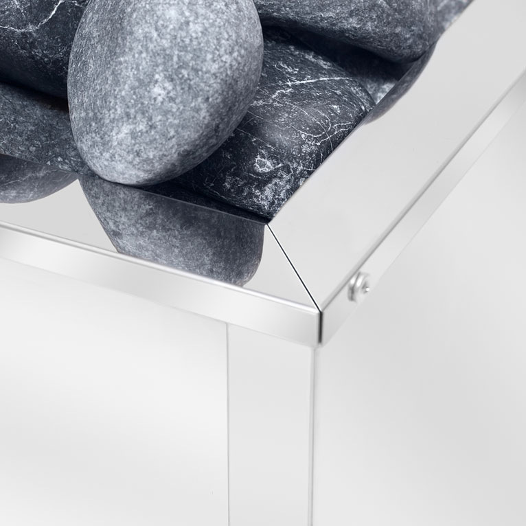 Нагревательным элементом в печке является ТЭН из высококачественной нержавеющей стали. Его диаметр составляет 10 мм. Подобные нагреватели не боятся попадания влаги. Это позволяет устанавливать электрическую каменку как в финские сауны с «сухим» паром, так и в русские традиционные бани с повышенной влажностью, потому что на камни, находящиеся в электропечи можно спокойно лить воду для повышения влажности пара.
