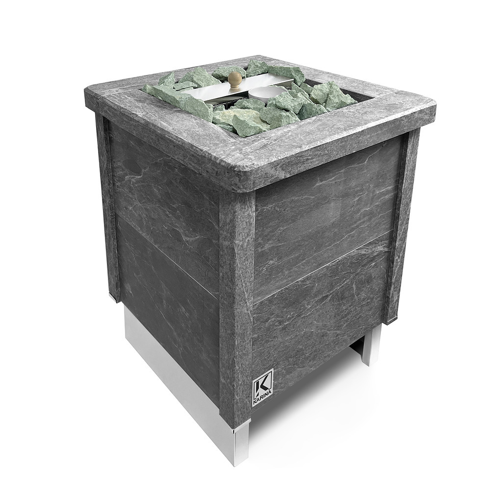 Электрическая печь KARINA Quadro 12 Талькохлорит – это электрокаменка, облицованная натуральным камнем со всех сторон, и обладающая мощностью оптимальной для семейных саун и средних бань объемом до 16 м3.