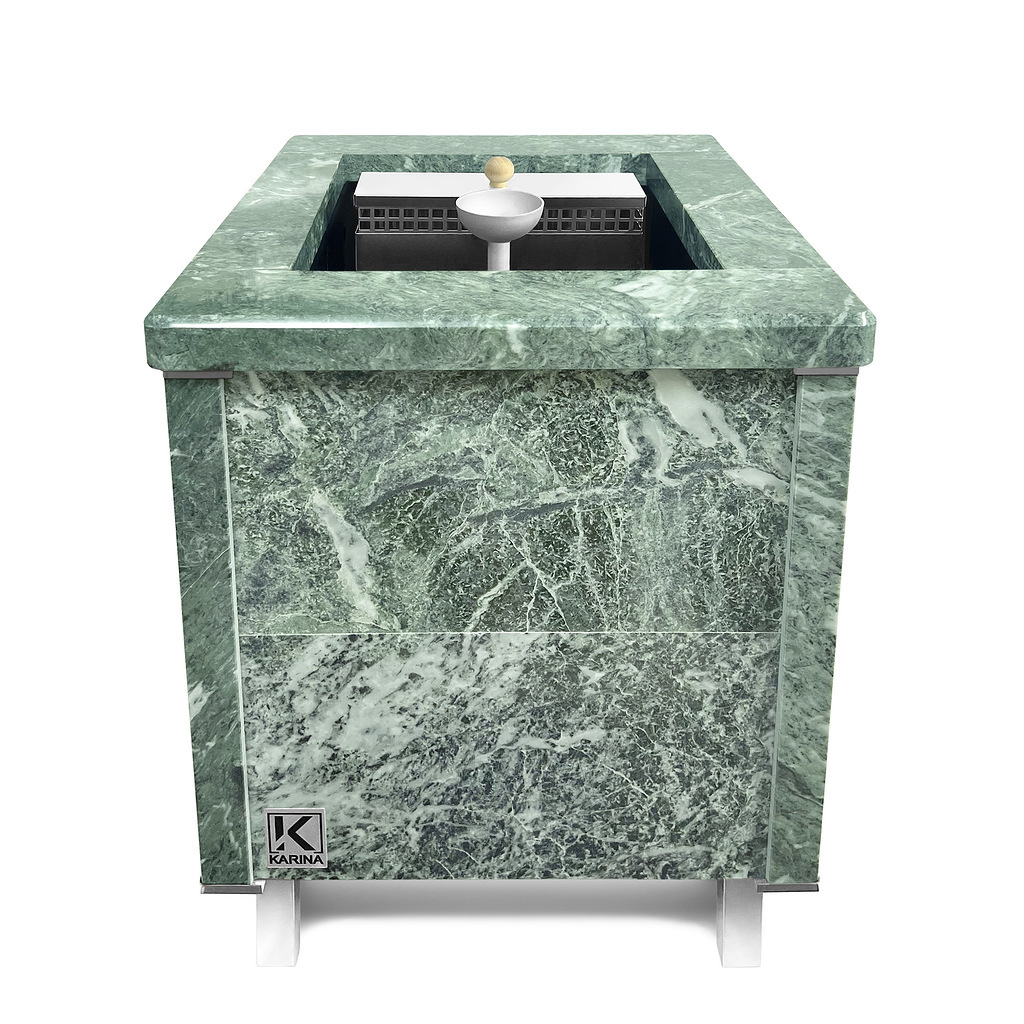 Электрическая печь KARINA Quadro 15 Змеевик представляет собой электрокаменку, полностью облицованную натуральным камнем, и способной прогреть коммерческие бани и сауны объемом до 24 м3.