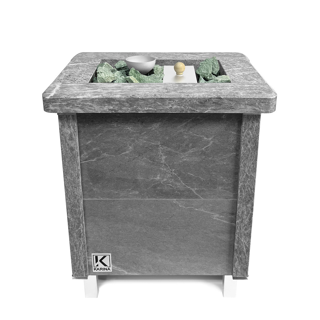 Электрическая печь KARINA Quadro 6 Талькохлорит – это электрокаменка, облицованная натуральным камнем со всех сторон, и обладающая мощностью оптимальной для домашних и небольших бань и саун объемом до 7 м3.
