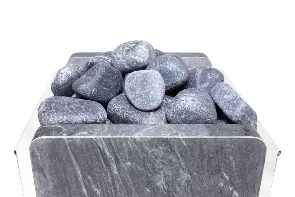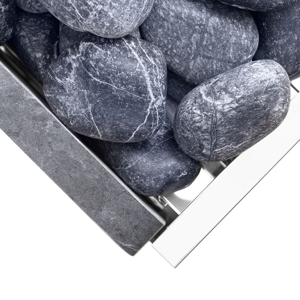 Простые формы каменки выгодно подчеркнуты 4 вертикальными камнями талькохлорита, которыми облицованы передняя и задняя стенки печи. Материал боковых стенок представляет собой высококачественная нержавеющая сталь, защищающая все внутренние элементы прибора от влаги, температурных перепадов и коррозии.