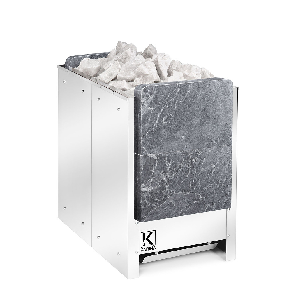 Электрическая печь KARINA Tetra 28 Талькохлорит идеально подходит для коммерческих саун - объемом до 50 кубических метров. Благодаря своему стильному и лаконичному дизайну, электрокаменка впишется в сауны с различным интерьером.