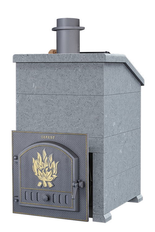 Гефест ЗК 40 - печь с усиленной каменкой большей массы, с единым углублением внутрь топки для дополнительной укладки чугунного заряда. Теплосъемные шипы, со стороны горения пламени, в разы увеличивают площадь соприкосновения огня с каменкой и ускоряют передачу тепла, а также способствуют лучшему дожигу смешивая потоки пламени и воздуха поступаемого из воздушника. Эти усовершенствования значительно повышают мощность парообразования печи и выдают большее количество пара при непрерывной подаче воды. Каменка печей Гефест-ЗК является незаливаемой.