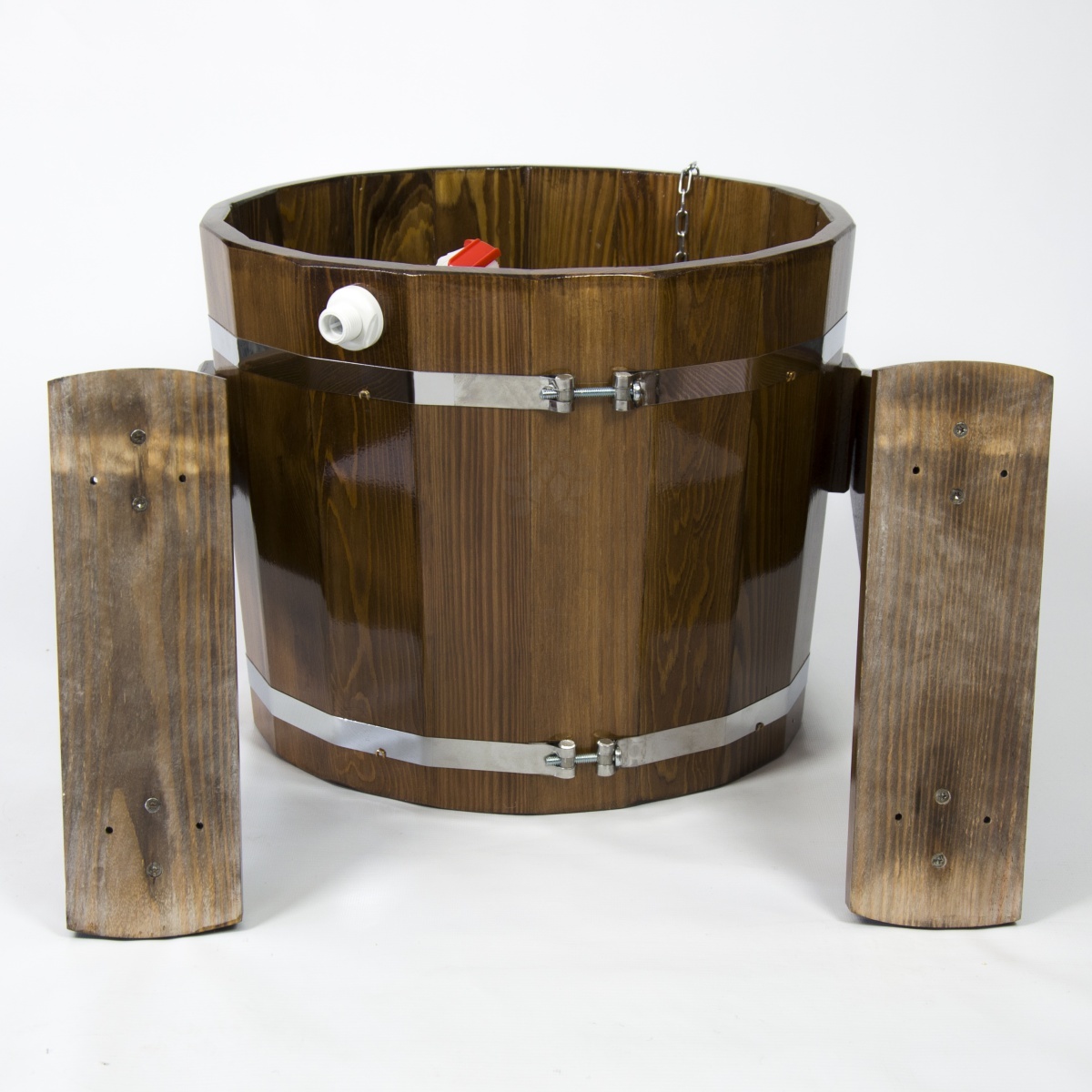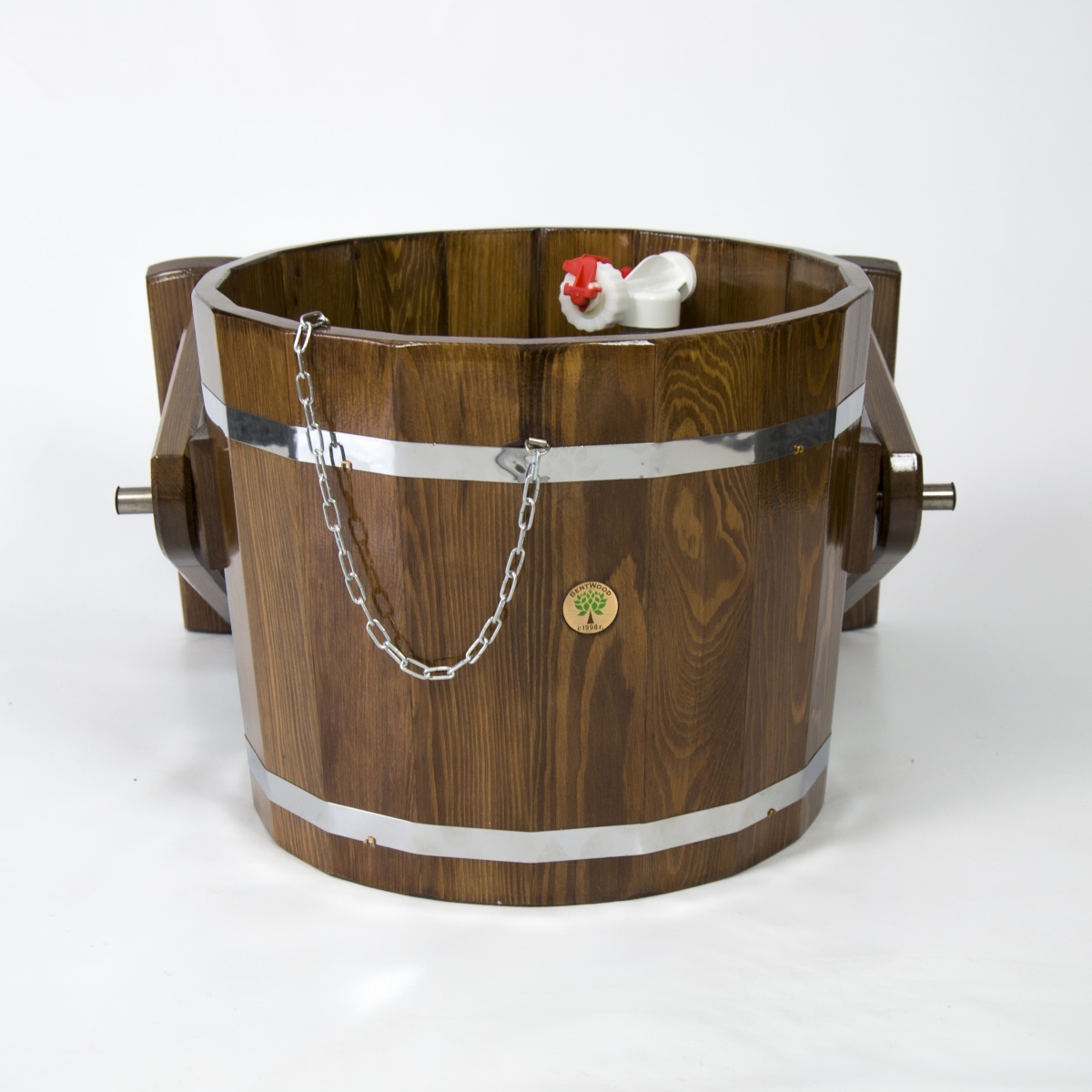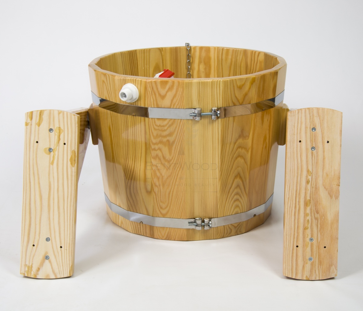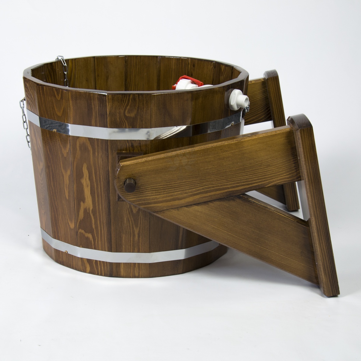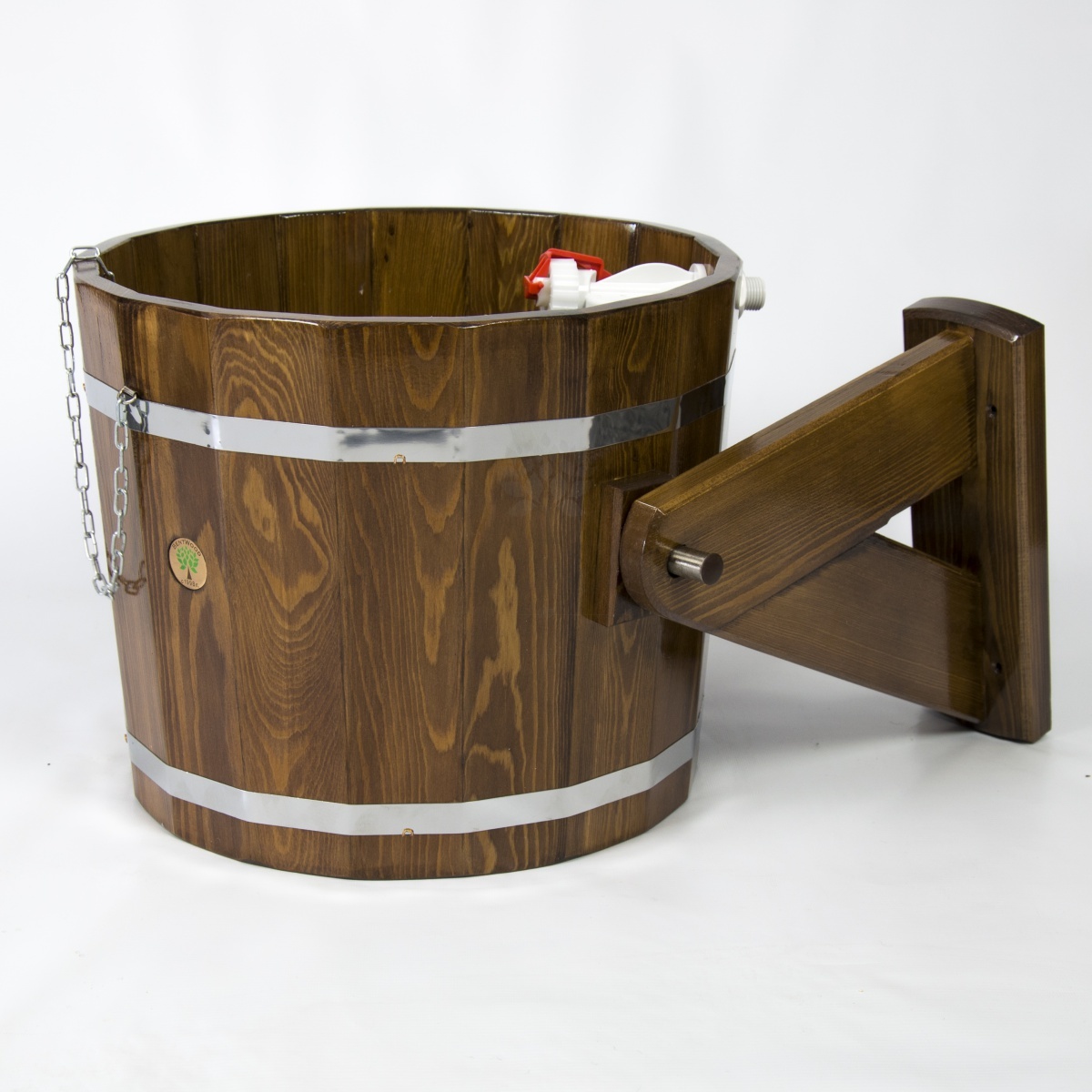 Обливное устройство изготовлено из лиственницы. Лиственничная древесина устойчива к воздействию гнилостных микроорганизмов. Достаточно вспомнить, что Венеция стоит именно на лиственничных сваях. Древесина из лиственницы необыкновенно красива: большое количество оттенков, необычная фактура дерева приковывает взгляд.