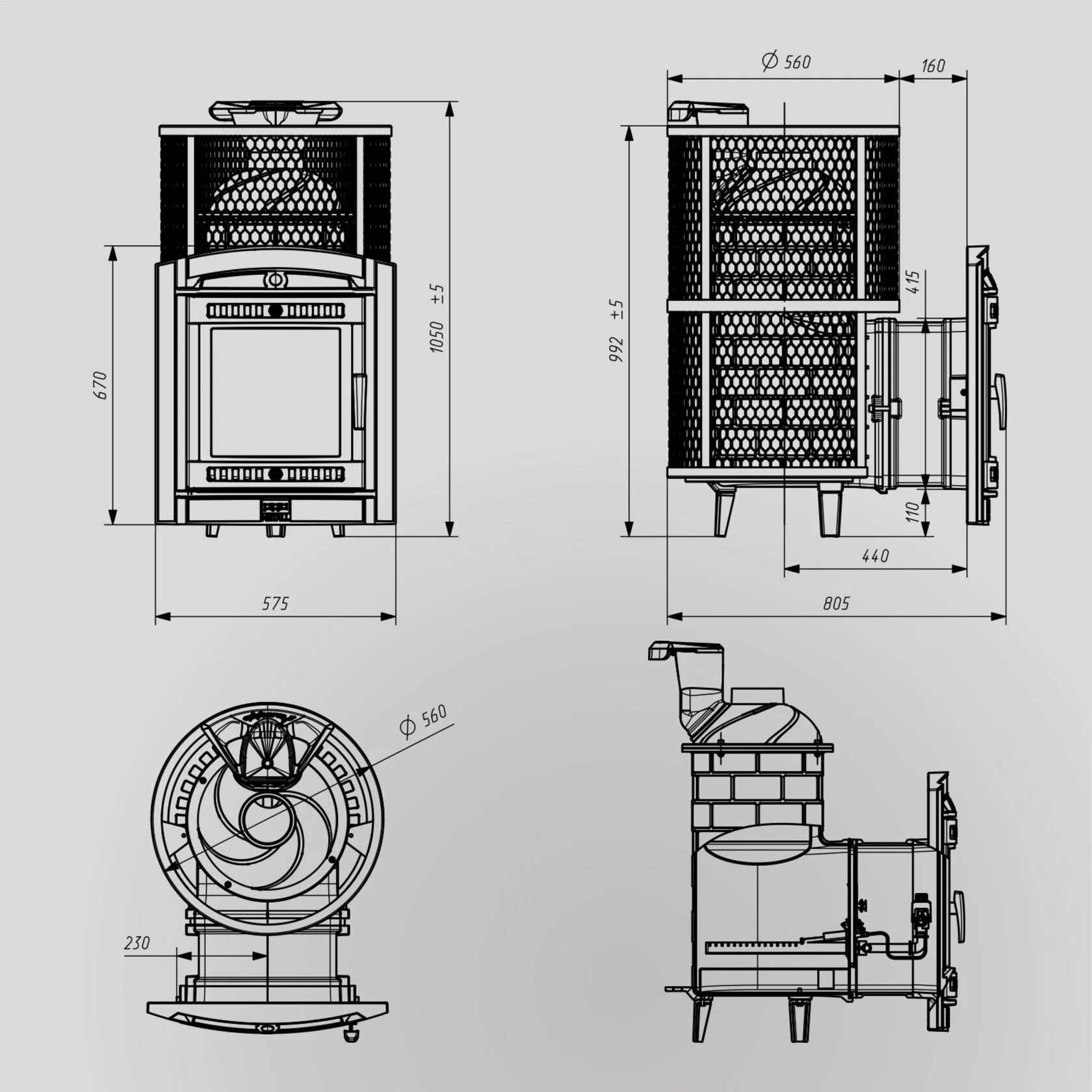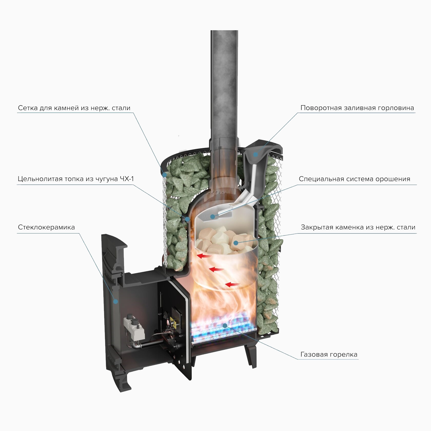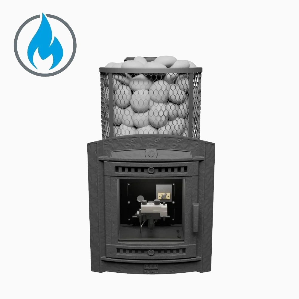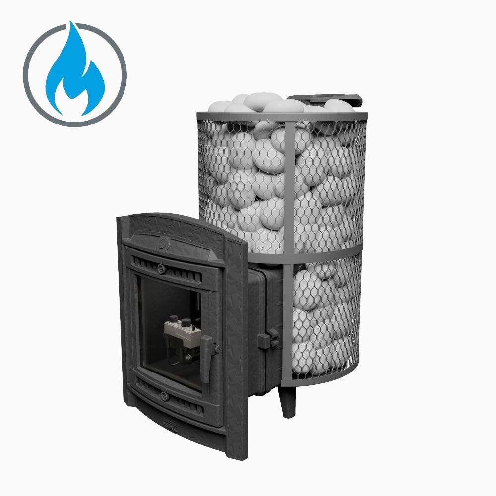 Компактная и экономичная модель. Кожух печи изготовлен в виде сетки из стали и полностью заполняется природными камнями, обеспечивая высокую динамику нагрева парильного помещения.