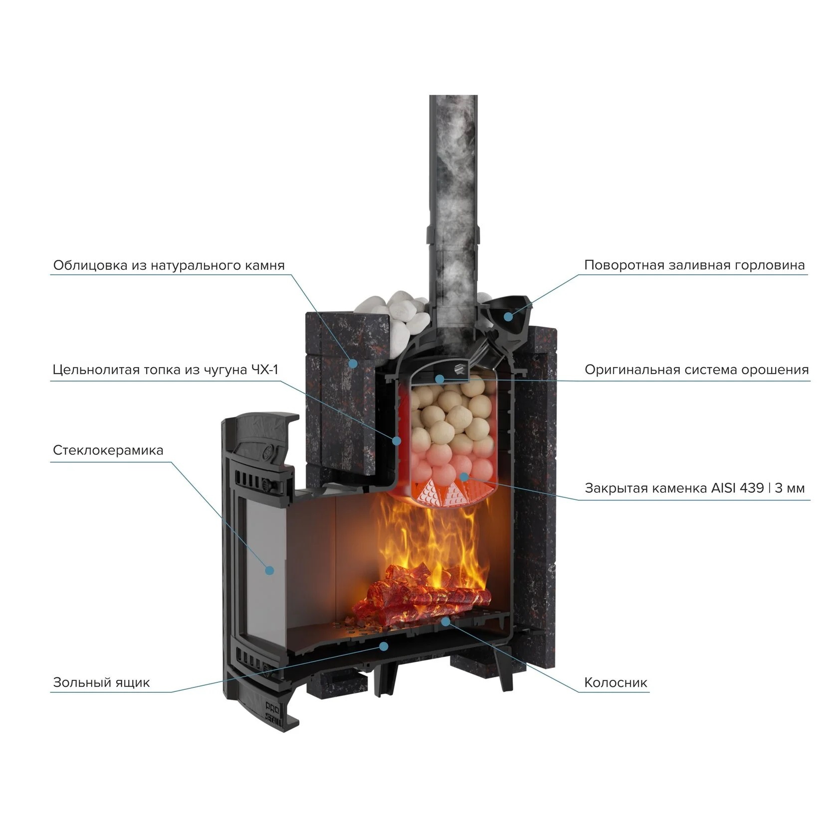 Объем закрытой каменки - 18 литров