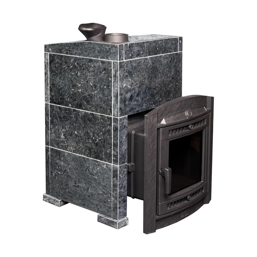 Модель печи в стильной и практичной облицовке из «Пироксенит». За счет использования несущих брусков, состоящих из цельного камня, теплоёмкость печи увеличивается на 50%. Конструкция просто собирается и позволяет легко заменить любую деталь в случае необходимости. Цена и КПД такой облицовки отличаются оптимальным соотношением.