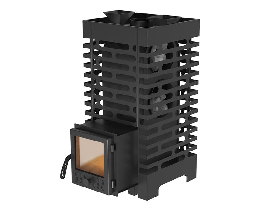 - Стальной кожух-конвектор значительно ускоряет нагревание воздуха в парилке за счет образуемого им мощного воздушного потока.