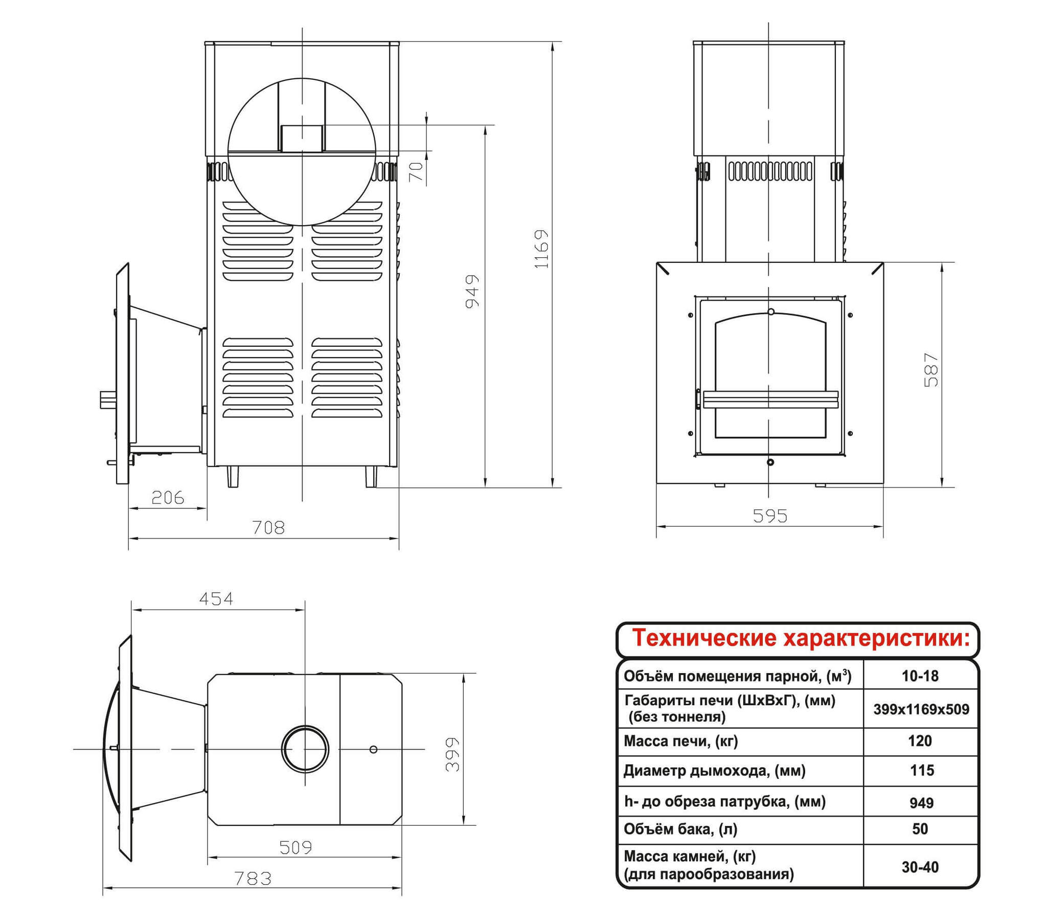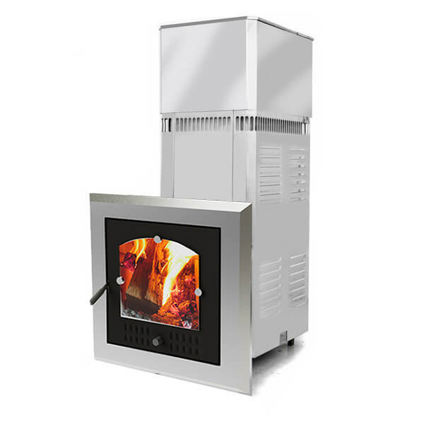 Возможна комплектация укороченным топливным каналом с глухой дверью из конструкционной стали для топки из парильного помещения.