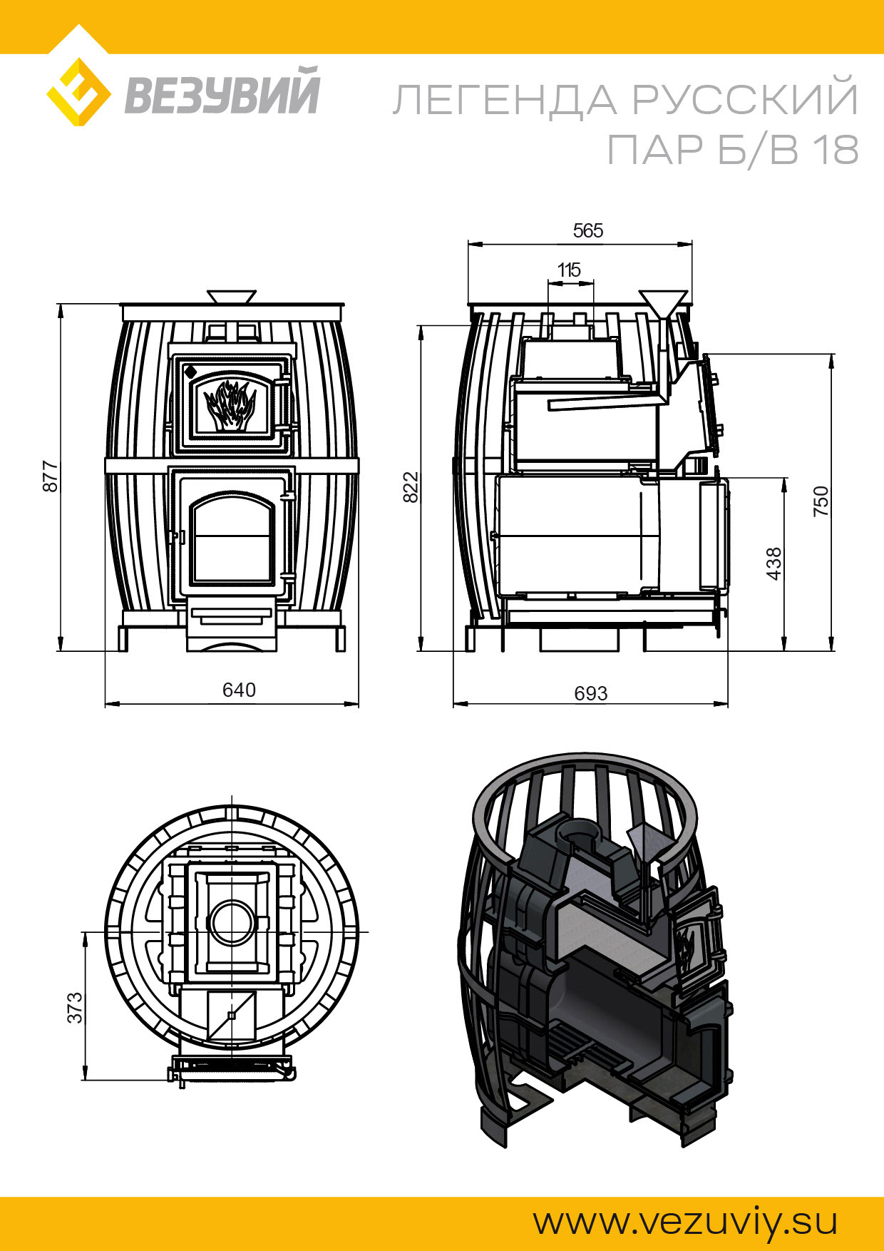 Печь ВЕЗУВИЙ Легенда Русский пар Ковка 18 (271) б/в