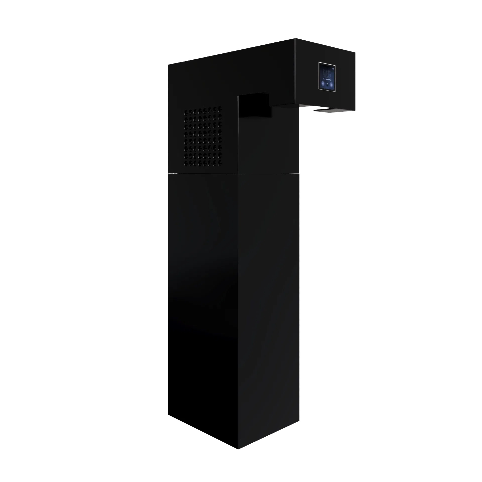 Рекомендовано к расположению устройства на стойке, за потолком или на мебели. Доступна возможность подачи воды через трубу или бак с водой. Подключается к водопроводу. Корпус реализован из нержавеющей стали AISI 304, толщиной 1–1.5 мм, устойчивой к коррозии и щелочному конденсату, что гарантирует его долговечность и бесперебойную работу.